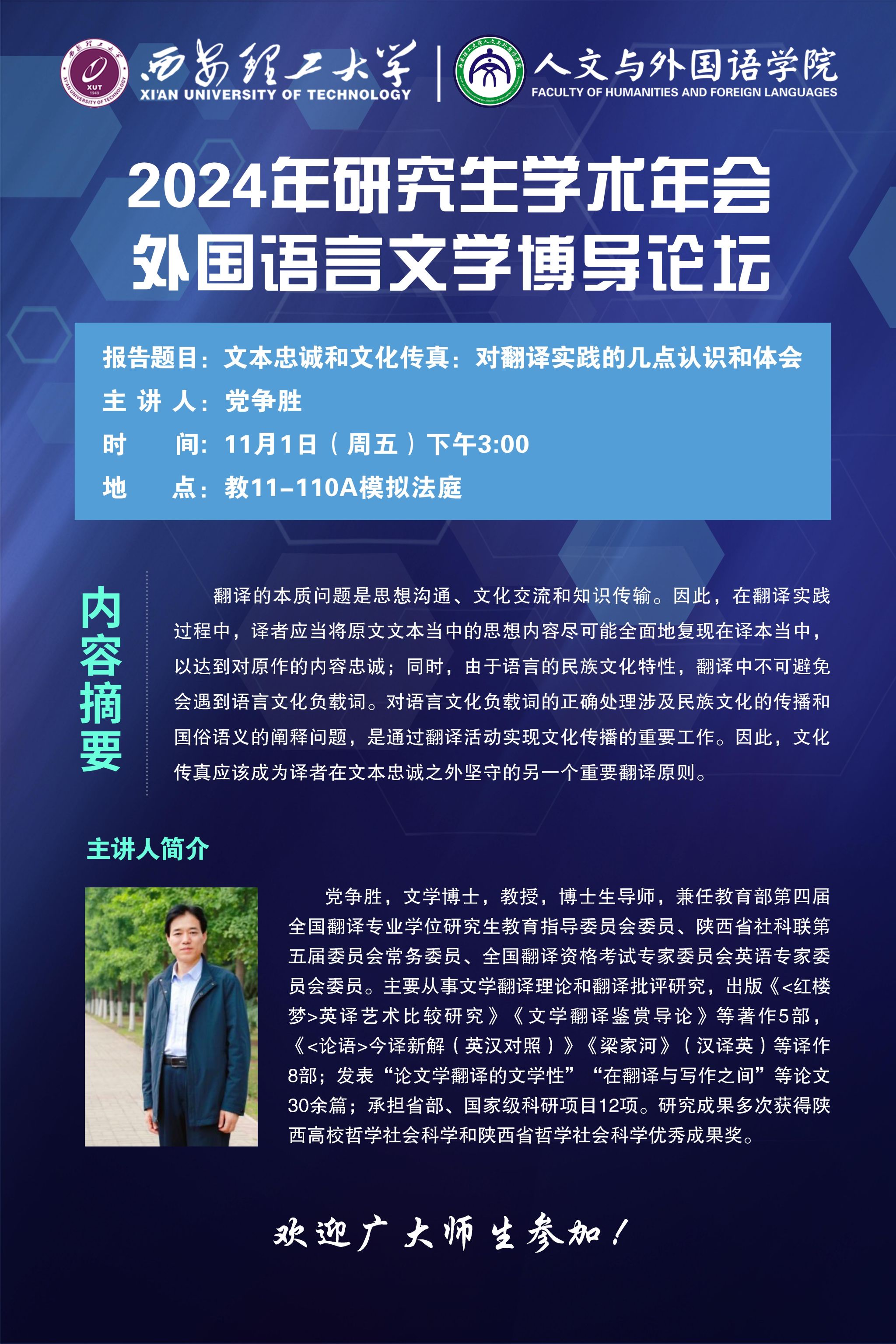 研究生学术年会系列报告——文本忠诚和文化传真:对翻译实践的几点认识和体会