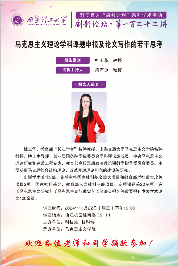 创新论坛第122讲——上海交通大学杜玉华教授学术报告通知