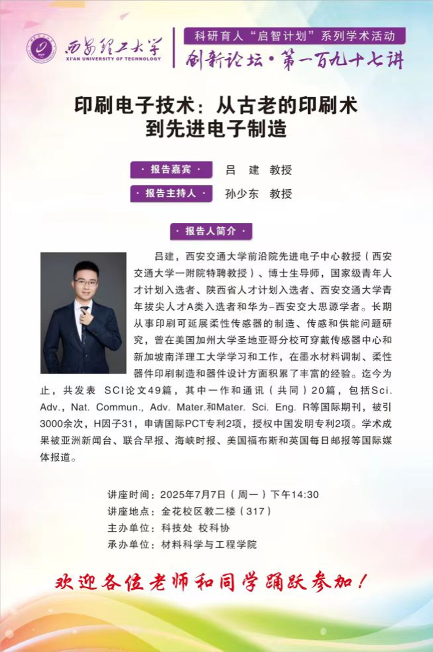 创新论坛第197讲:【淬砺成材】西安交通大学吕建教授学术报告通知
