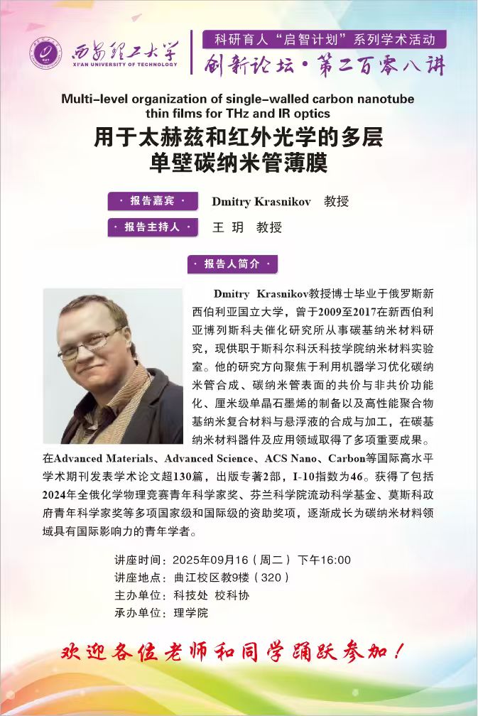 创新论坛第208讲:【明理笃学】俄罗斯新西伯利亚国立大学Dmitry Krasnikov教授学术报告通知