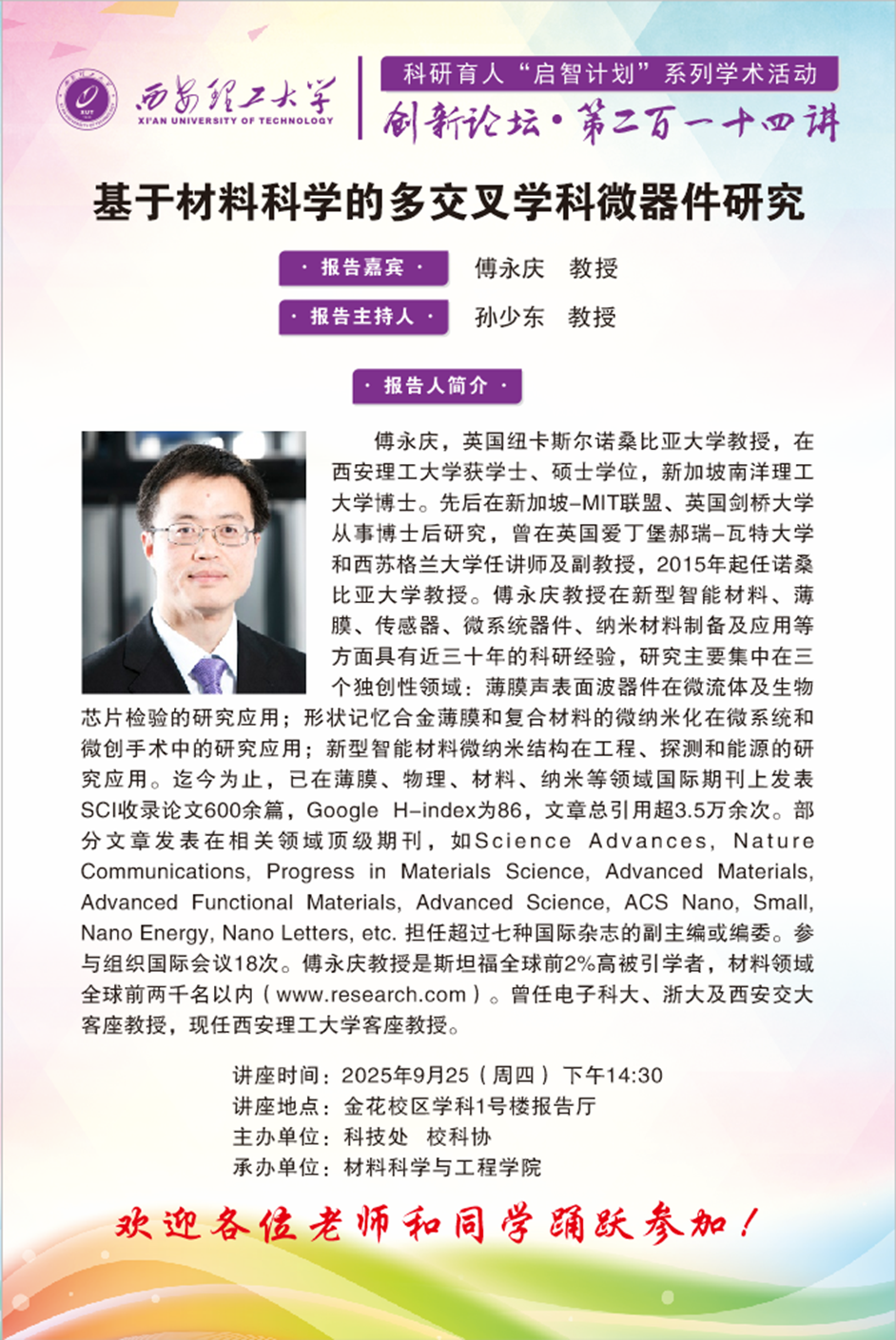 创新论坛第214讲:【淬砺成材】英国纽卡斯尔诺桑比亚大学傅永庆教授学术报告