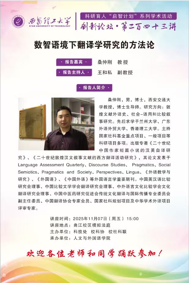 创新论坛第243讲:【人文雅韵】西安交通大学桑仲刚教授学术报告通知