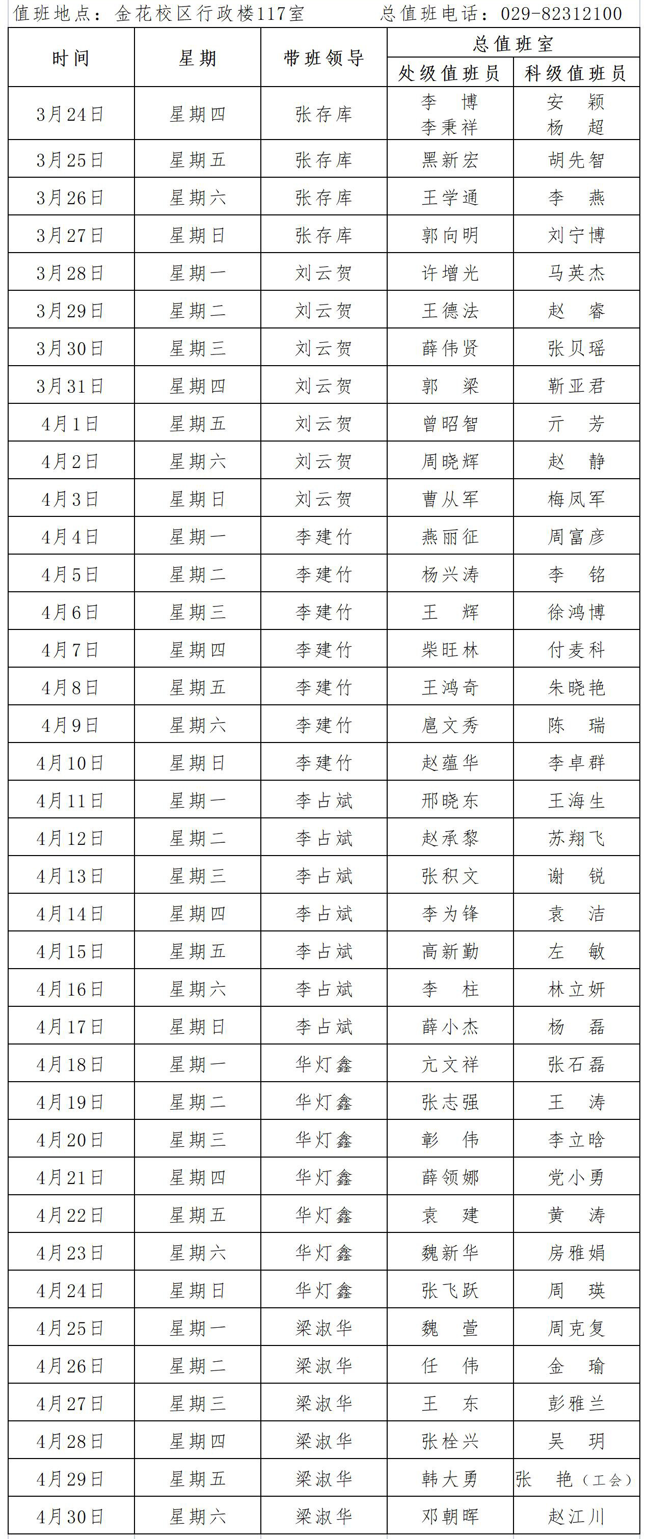 BEAT365英国官网总值班安排表(2022年3月24日--4月30日)
