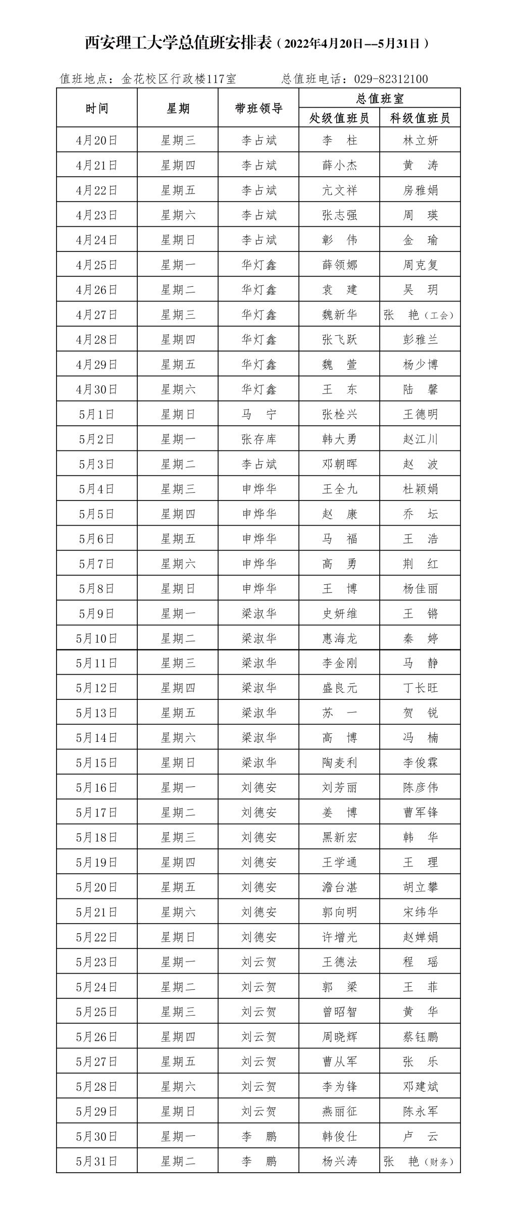 BEAT365英国官网总值班安排表(2022年4月20日--5月31日)