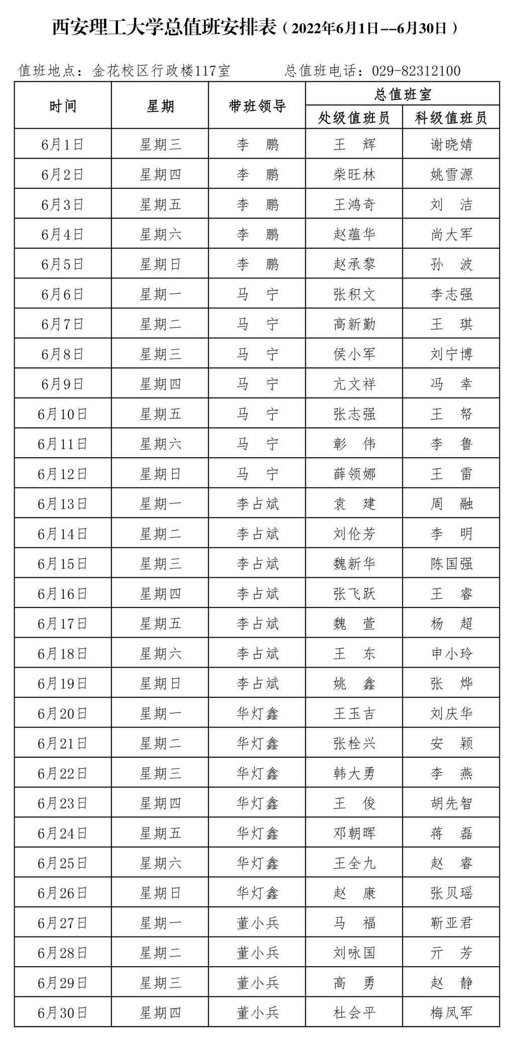 BEAT365英国官网总值班安排表(2022年6月1日--6月30日)