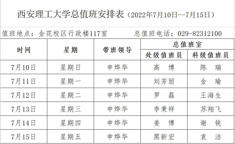 BEAT365英国官网总值班安排表(2022年7月10日--7月15日)