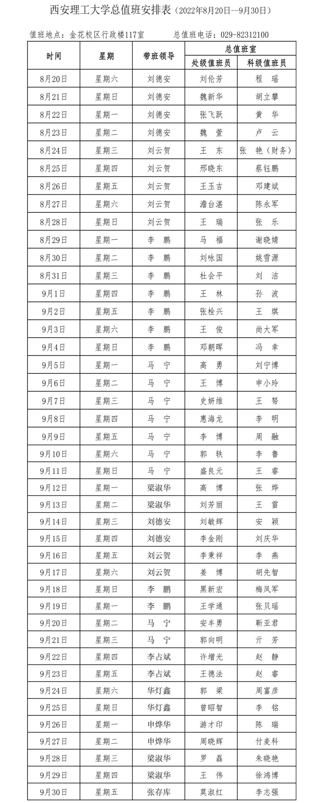 BEAT365英国官网总值班安排表(2022年8月20日--9月30日)