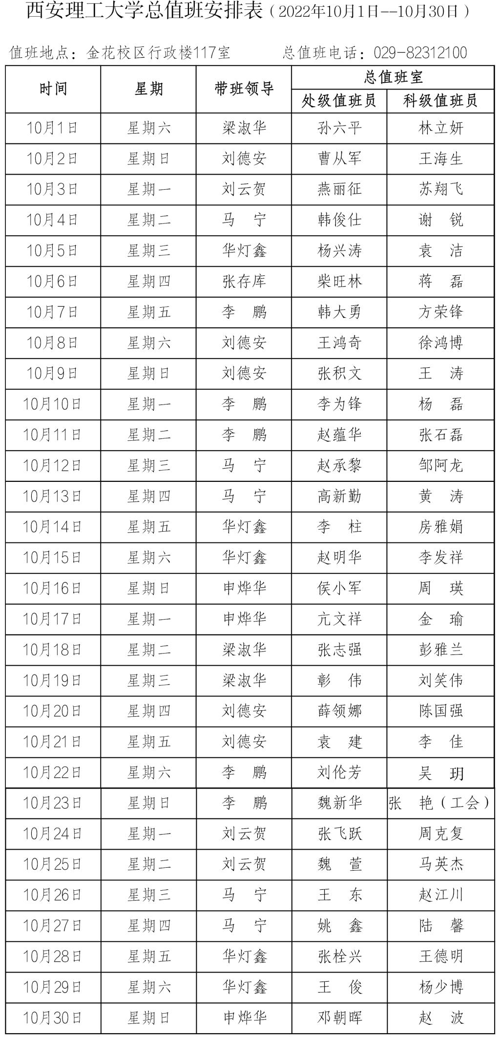BEAT365英国官网总值班安排表(2022年10月1日--10月30日)