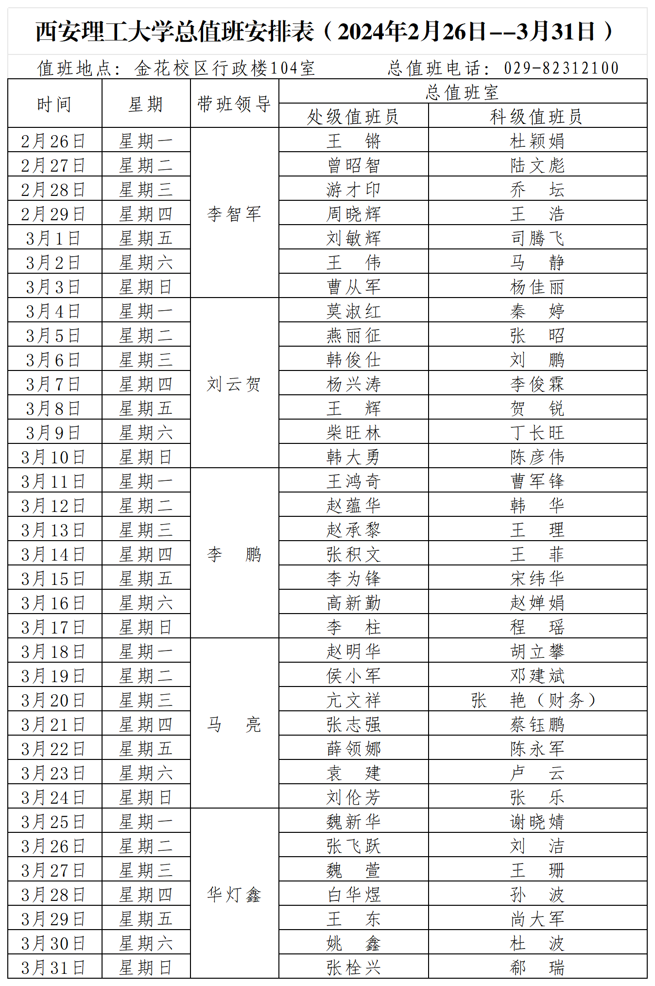 BEAT365英国官网总值班安排表(2024年2月26日--3月31日)
