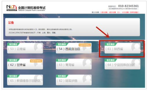 考生可登录中国教育考试网报名网址:ncre-bm.neea.cn(公网)或ncre-bm.neea.edu.cn(教育网),选择网页上“(61)陕西省”报名入口进入陕西省报名系统,在规定时间内根据流程提示完成网上注册、报名和缴费,逾期不予补报。