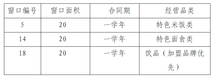 2.联营窗口情况:本次招商共3个窗口,详见下表。