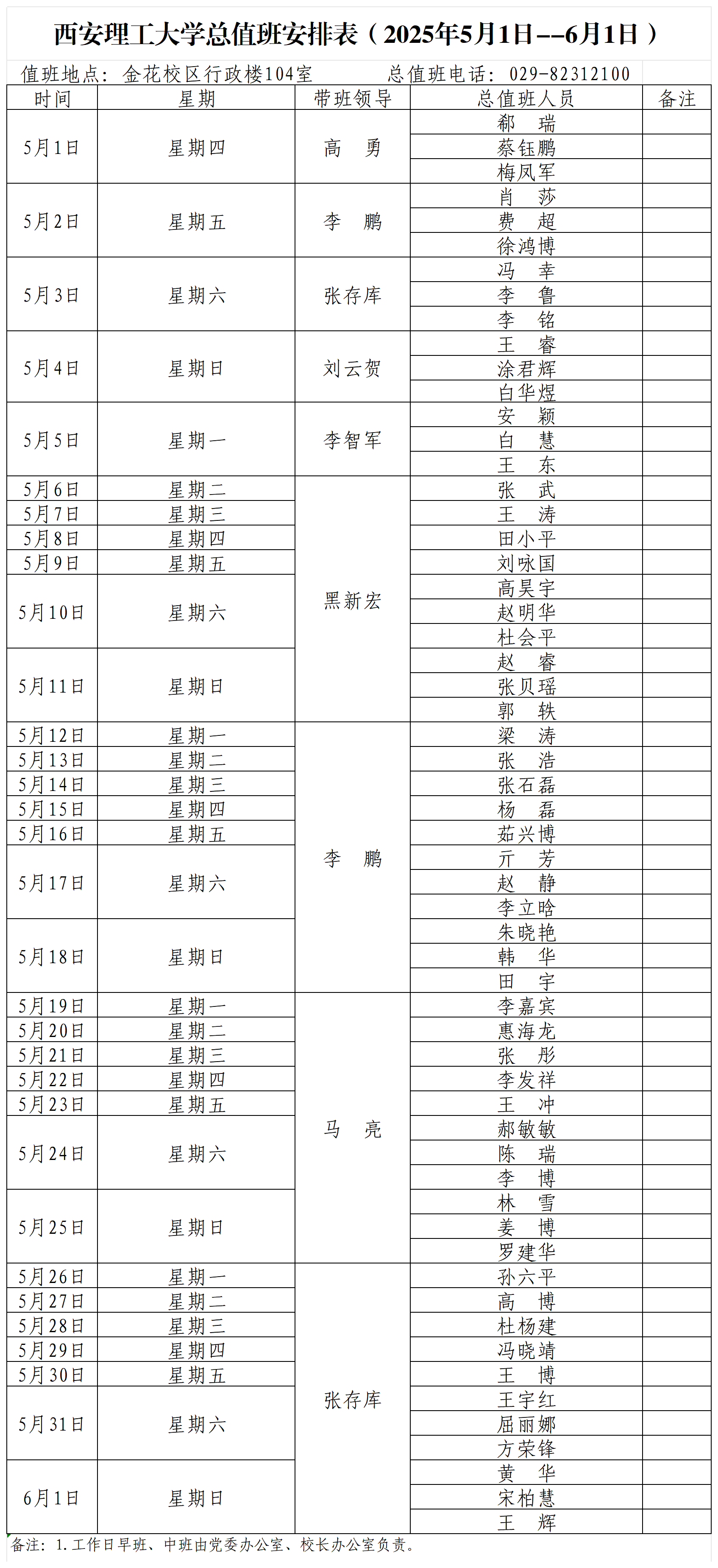 BEAT365英国官网总值班安排表(2025年5月1日--6月1日)