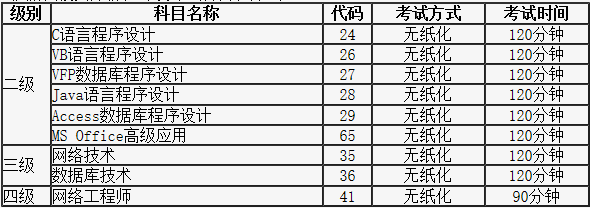 具体要求见附件一:“全国计算机等级考试证书体系”。