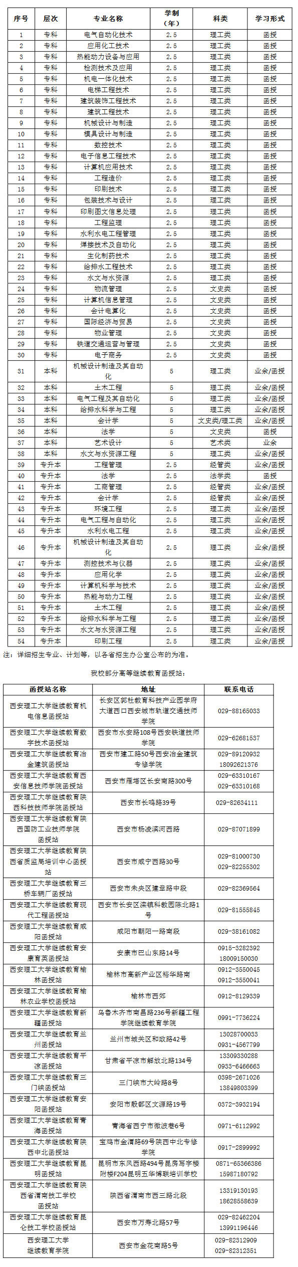 2、函授班:学生以自学为主、面授为辅,每学期在函授站集中面授。各函授站根据实际情况决定面授时间和地点。