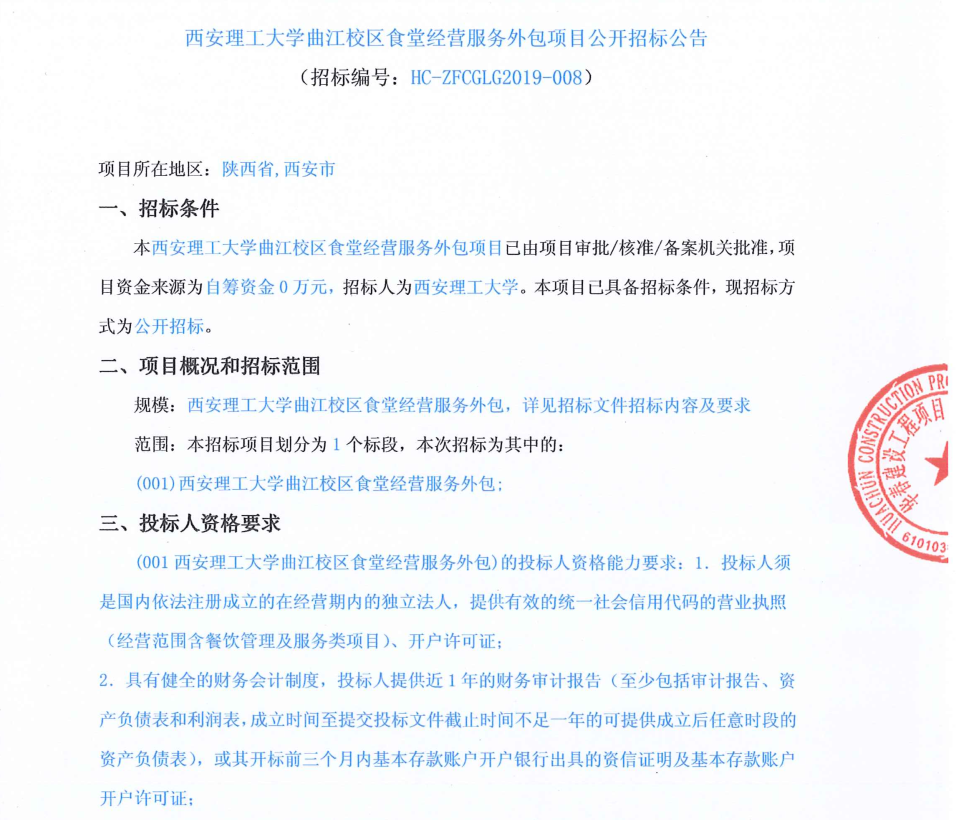 【食堂经营服务】BEAT365英国官网曲江校区食堂经营服务外包项目公开招标公告