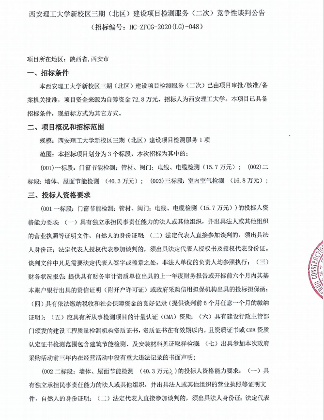 【检测服务二次】BEAT365英国官网新校区三期(北区)建设项目检测服务(二次)竞争性谈判公告