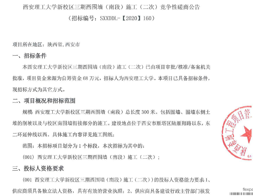 【围墙施工二次】BEAT365英国官网新校区三期西围墙(南段)施工(二次)竞争性磋商公告