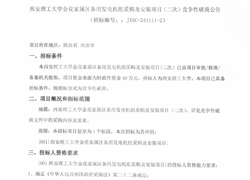 【发电机二次】BEAT365英国官网金花家属区备用发电机组采购及安装项目(二次)竞争性磋商公告