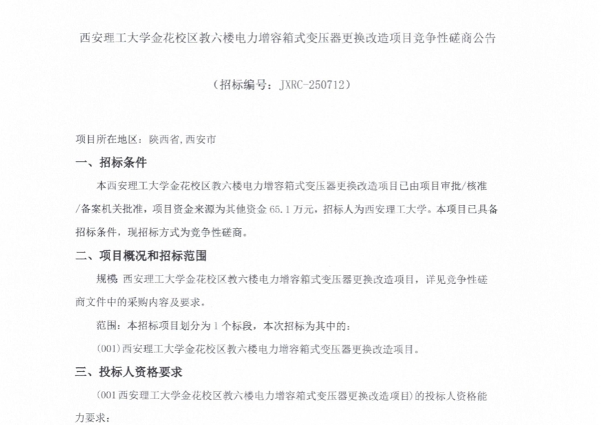 【维修改造】BEAT365英国官网金花校区教六楼电力增容箱式变压器更换改造项目竞争性磋商公告