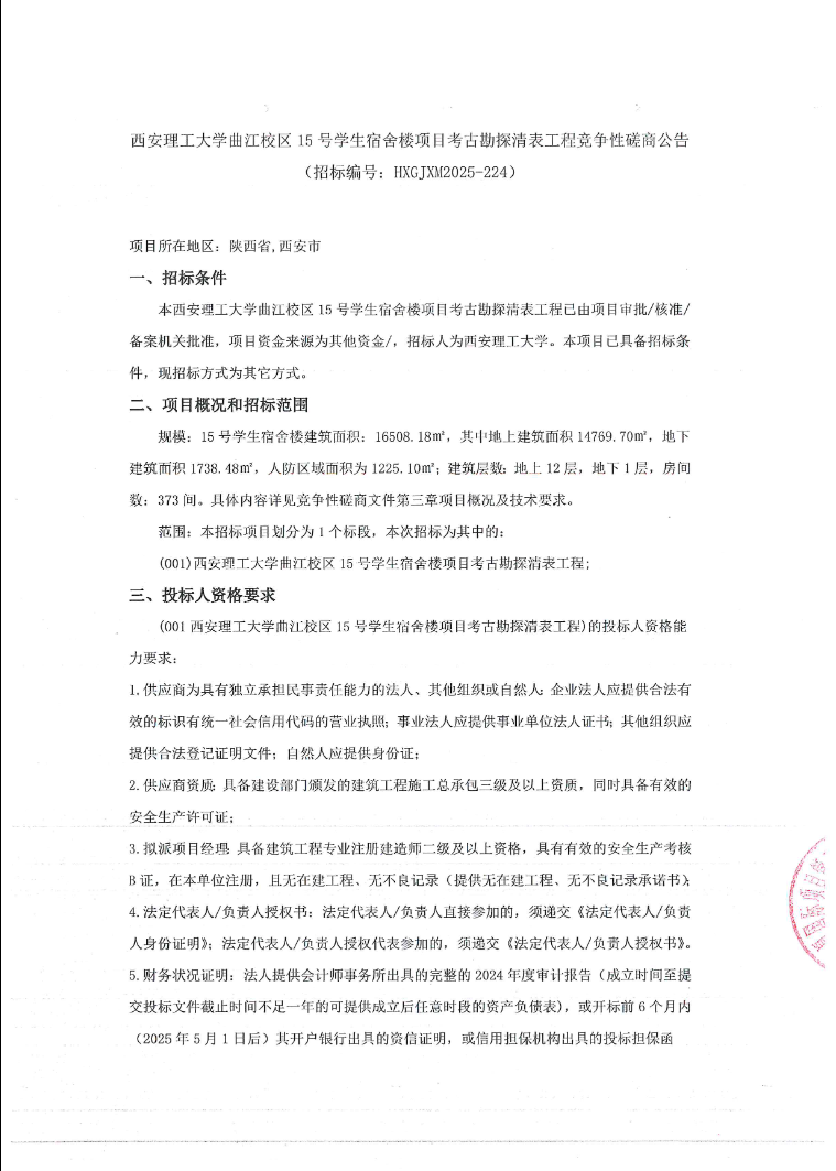 【清表工程】BEAT365英国官网曲江校区15号学生宿舍楼项目考古勘探清表工程竞争性磋商公告