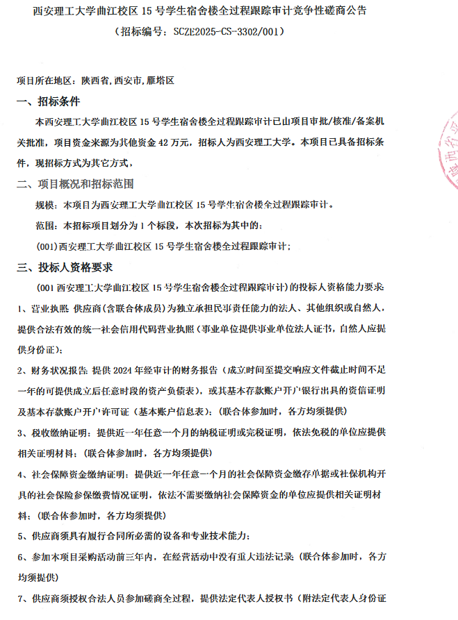 【全过程审计】BEAT365英国官网曲江校区15号学生宿舍楼全过程跟踪审计竞争性磋商公告