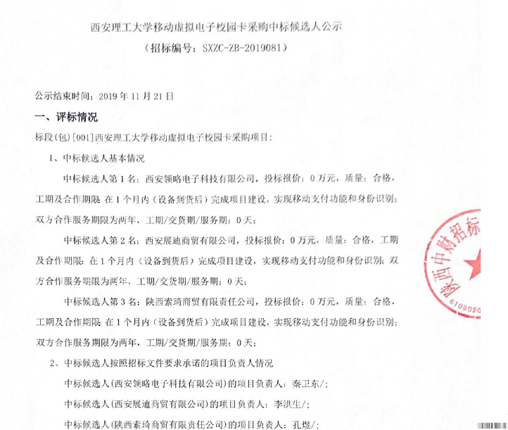 【电子校园卡】BEAT365英国官网移动虚拟电子校园卡采购中标候选人公示
