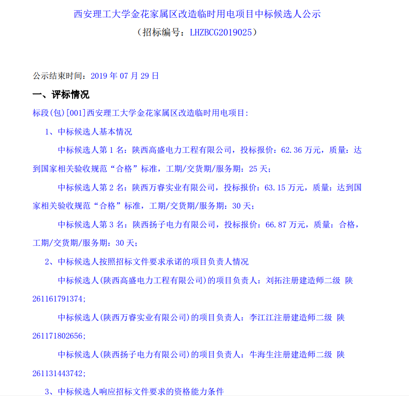 【临时用电】BEAT365英国官网金花家属区改造临时用电项目中标候选人公示