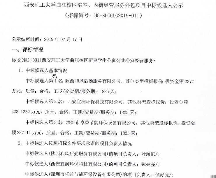 【服务外包】BEAT365英国官网曲江校区浴室、内街经营服务外包项目中标候选人公示