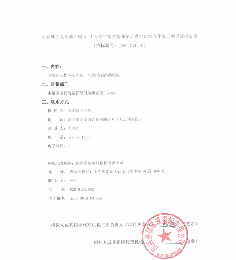 【亮化工程】BEAT365英国官网曲江校区11号学生宿舍楼和第五食堂建筑亮化施工项目废标公告
