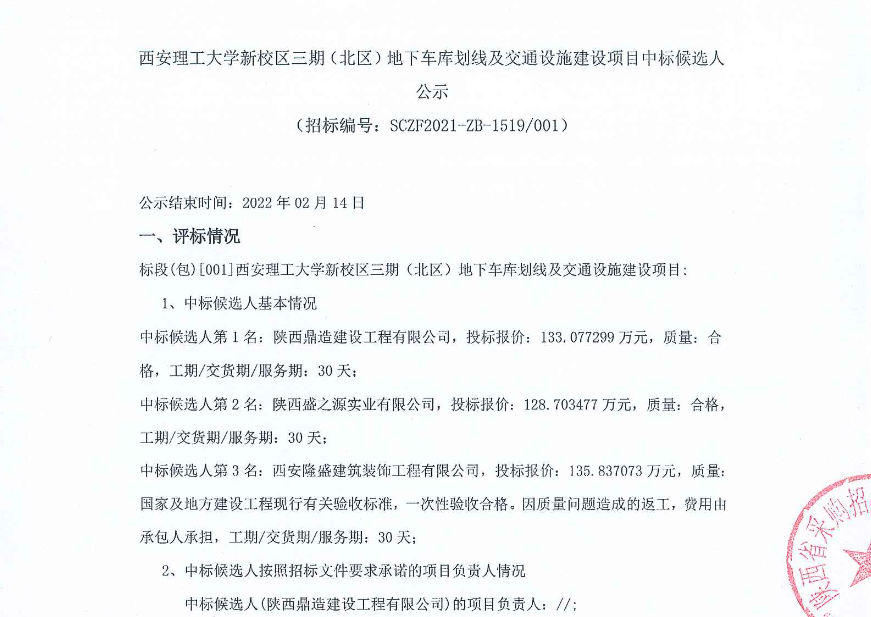 【车库划线】BEAT365英国官网新校区三期(北区)地下车库划线及交通设施建设项目中标候选人公示