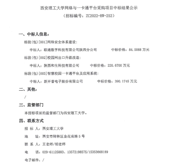 【银校合作】BEAT365英国官网网络与一卡通平台采购项目中标结果公示