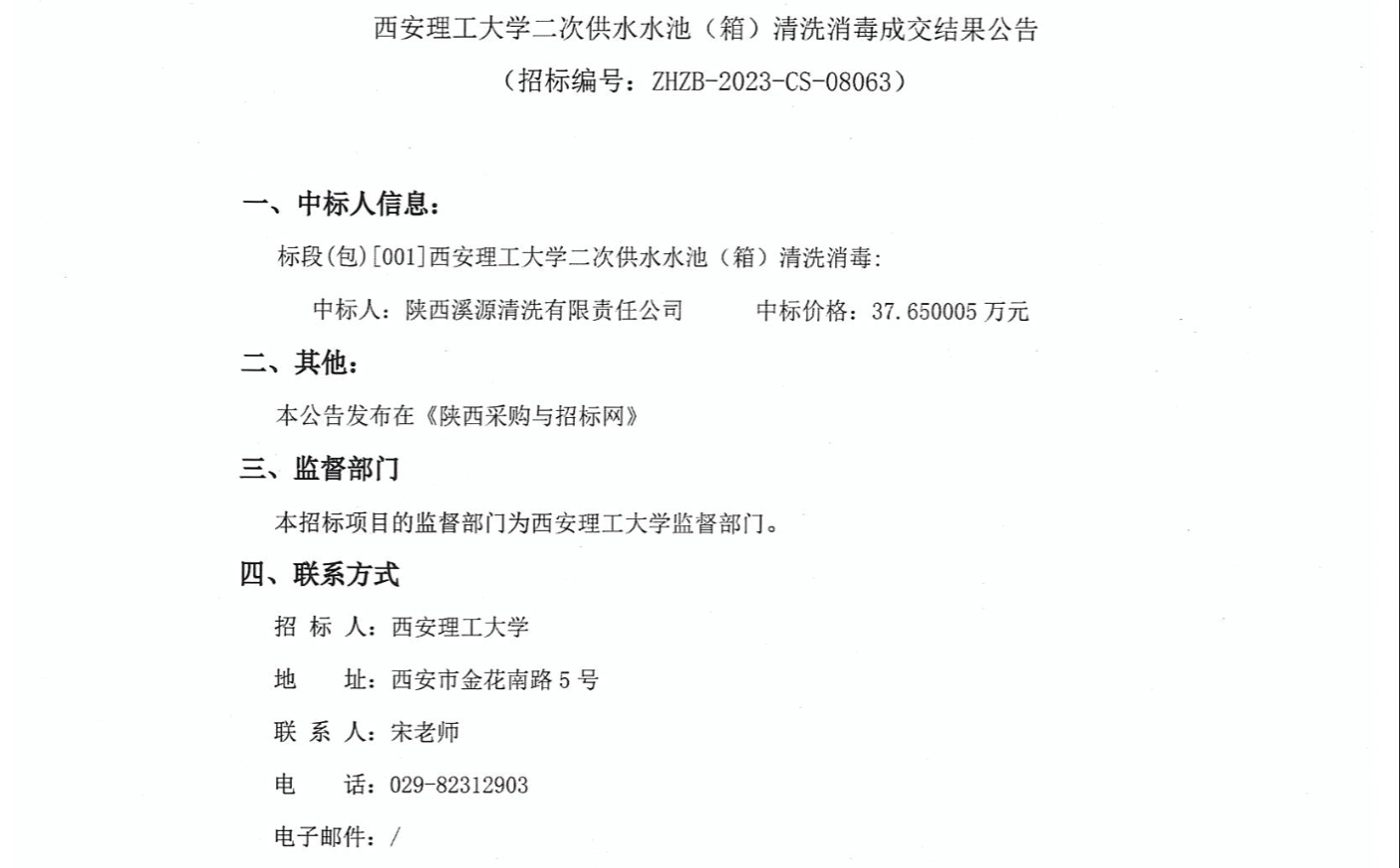 【水池(箱)清洗消毒】BEAT365英国官网二次供水水池(箱)清洗消毒成交结果公告