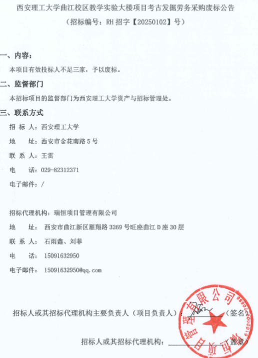 【考古发掘劳务】BEAT365英国官网曲江校区教学实验大楼项目考古发掘劳务采购废标公告