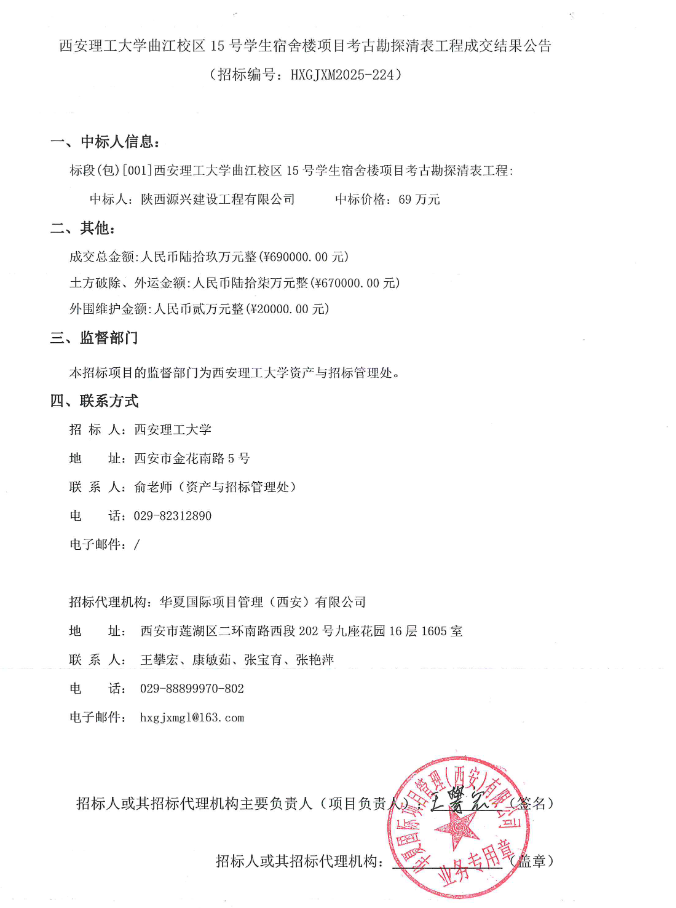 【清表工程】BEAT365英国官网曲江校区15号学生宿舍楼项目考古勘探清表工程成交结果公告