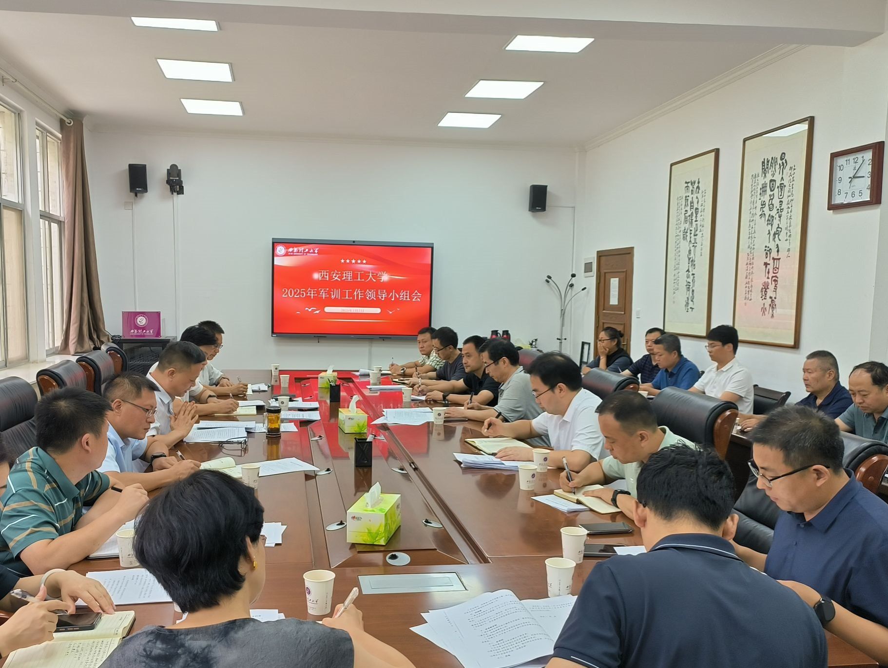 姚鑫传达了陕西省教育厅、陕西省军区战备建设局《关于做好2025年全省学生军事训练工作的通知》精神,武装部副部长张明介绍了BEAT3652025年本科生军训工作安排方案及各单位、部门工作分工,与会人员对军训有关工作进行了交流研讨。