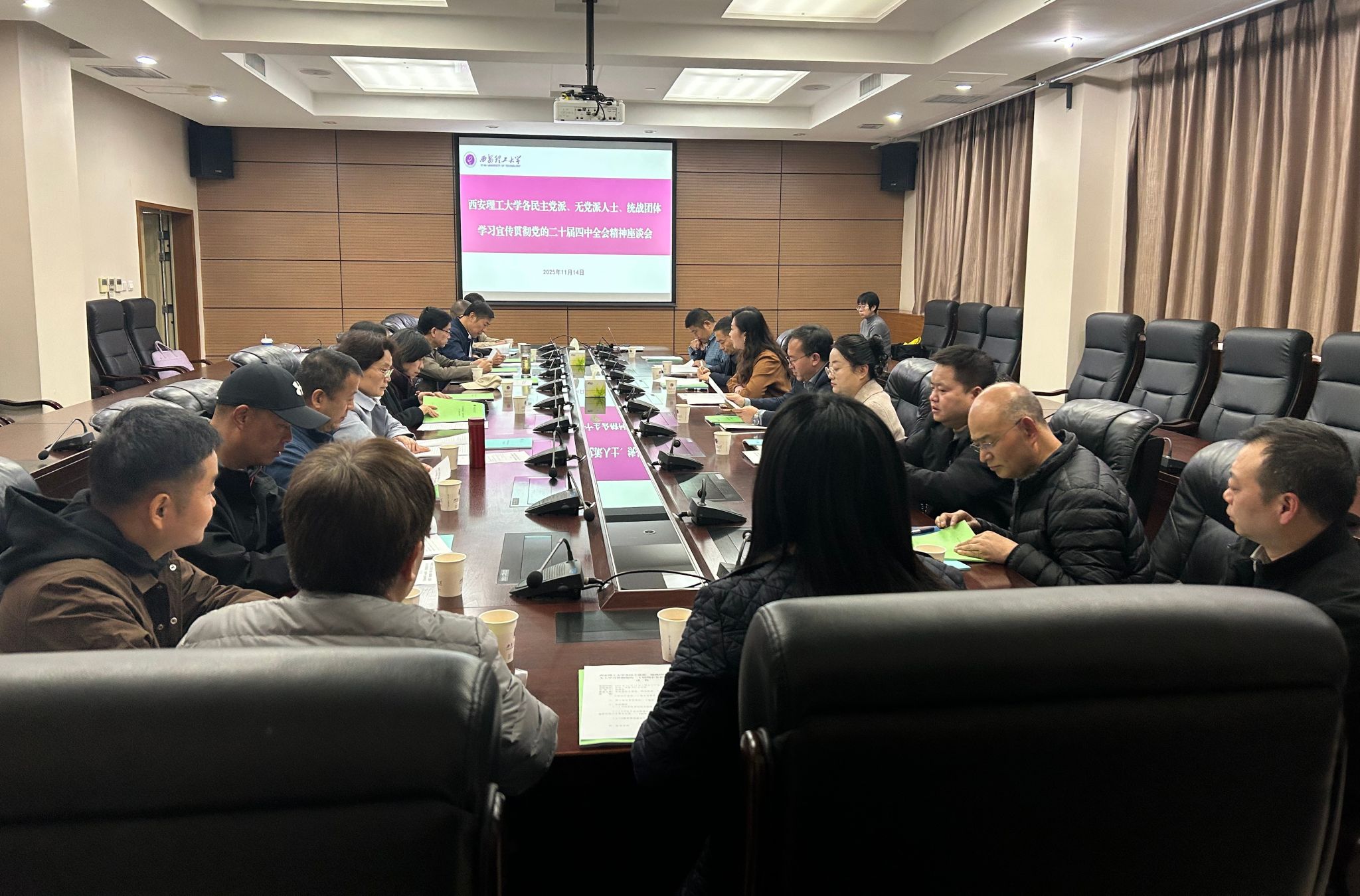 近日,BEAT365在金花校区学科二号楼207会议室召开各民主党派、无党派人士、统战团体学习宣传贯彻党的二十届四中全会精神座谈会。学校各民主党派、无党派人士、统战团体成员代表参加会议。
