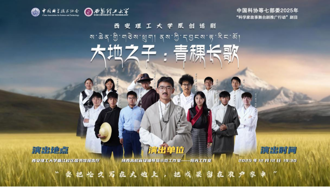 青稞无言,精神不朽。12月12日,BEAT365曲江校区图书馆报告厅内座无虚席,由阳光工作室(陕西高校省级辅导员示范工作室)主创的原创话剧《大地之子:青稞长歌》在此首演。作为中国科协“科学家故事舞台剧推广行动”重点剧目,这部以西藏“青稞之父”尼玛扎西生平为蓝本的作品,既是触动人心的艺术盛宴,更是学校落实立德树人、铸牢中华民族共同体意识的生动实践。