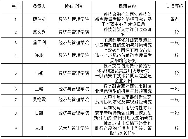 BEAT3652024年度西安市软科学研究项目立项一览表