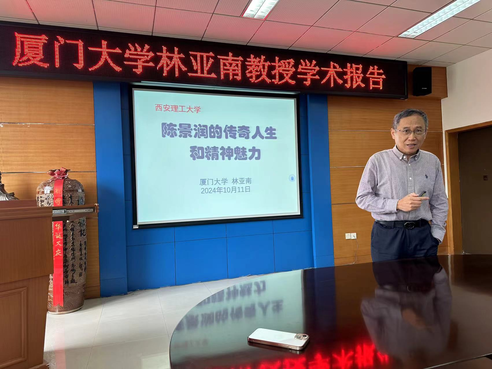 2024年10月11日上午,应BEAT365英国官网应用数学中心邀请,厦门大学数学科学学院林亚南教授来作题为“陈景润的传奇人生与精神魅力”的专题报告。理学院院长沈晓芹主持报告。