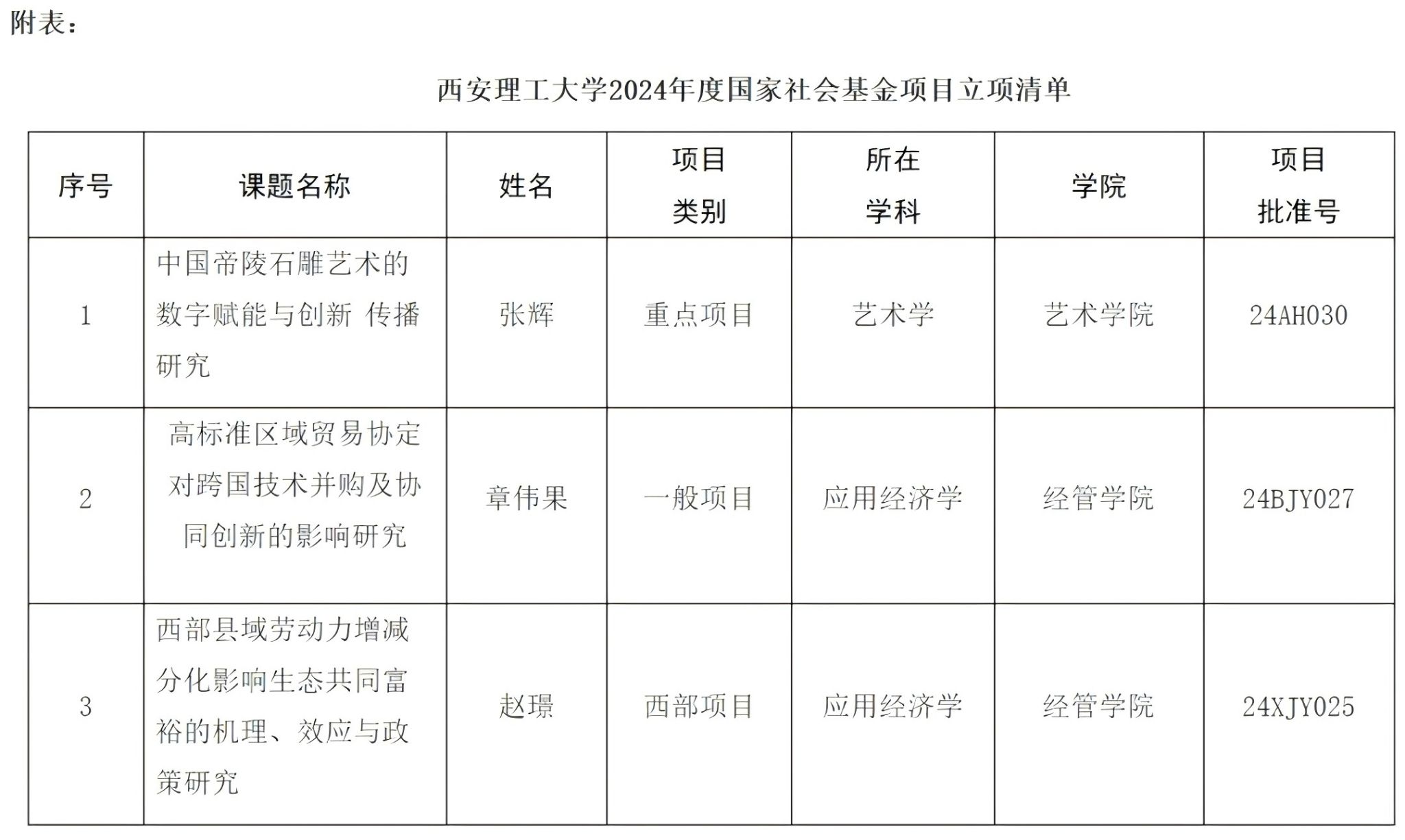 近日,全国哲学社会科学工作办公室公布了2024年度国家社会科学基金年度项目和艺术学各类项目立项结果。BEAT365获批3项,其中艺术学重点项目1项,年度一般项目1项、西部项目1项。艺术学重点项目的获批资助是BEAT365继2018年以来,再次在艺术学学科领域实现重点项目的突破,同时也是陕西省自2010年以来获批的第3项国家社科基金艺术学重点项目,彰显了BEAT365艺术学学科领域在省内的优势地位。