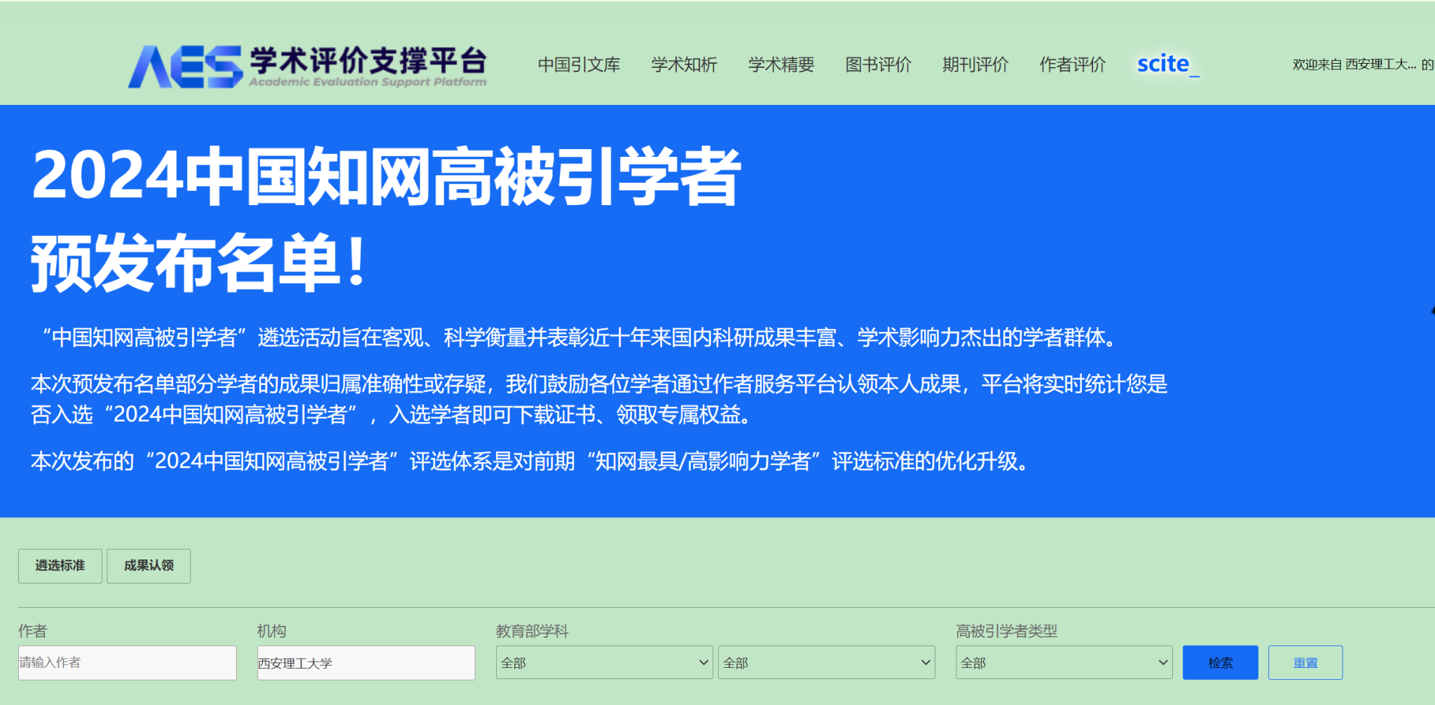 此次评价工作经过了严格的定量数据统计、遴选方案评审和学科专家调研等多重环节,最终形成了“2024中国知网高被引学者”预发布名单(https://xs.cnki.net/list/hcs_list)。此次遴选活动旨在客观、科学衡量并表彰近十年来国内科研成果丰富、学术影响力杰出的学者群体,助力优秀成果的国内首发。