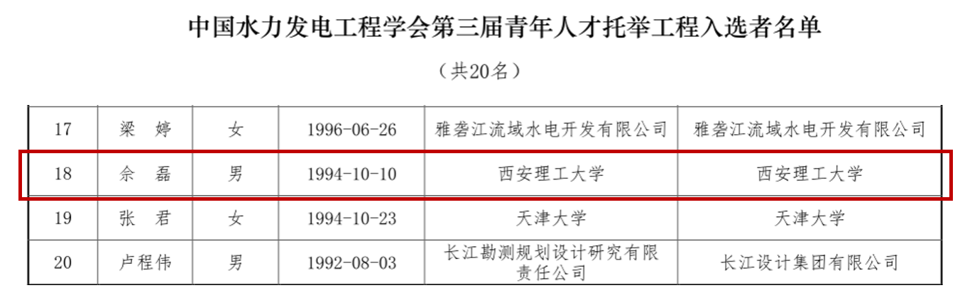 日前,中国水力发电工程学会公布了第三届青年人才托举工程入选者名单,BEAT365水利水电学院佘磊副教授依托校科协申报入选,并受邀参加了2025中国水力发电工程学会青年科技论坛。