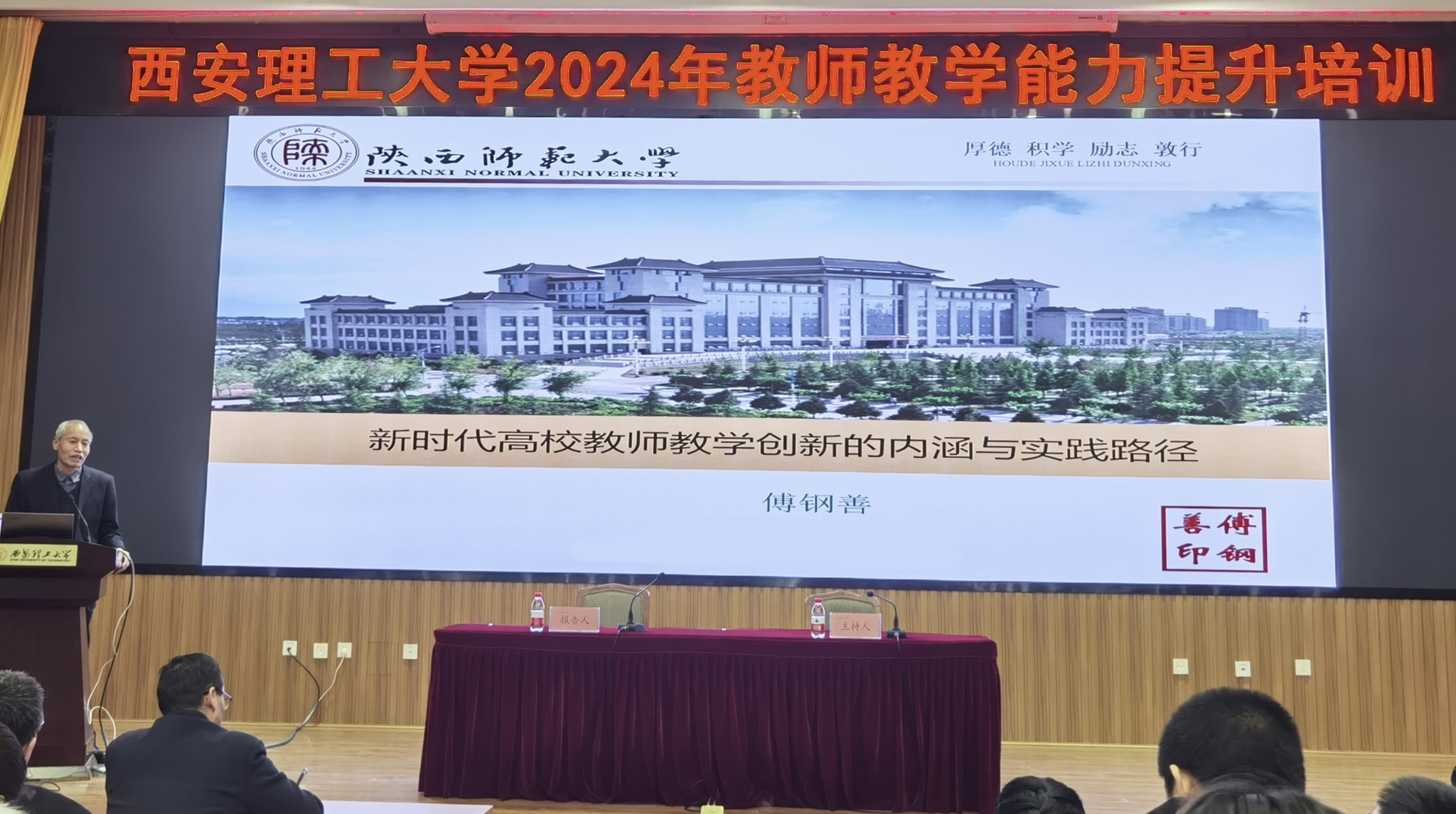 为全方位提升BEAT365教师教育教学能力,推动教师教学理念、方法、模式创新,12月5日,人事处、教务处邀请国家级教学名师、陕西师范大学终身教授傅钢善来校作《新时代高校教师教学创新的内涵与实践路径》的专题报告。报告会由人事处副处长王伟主持。
