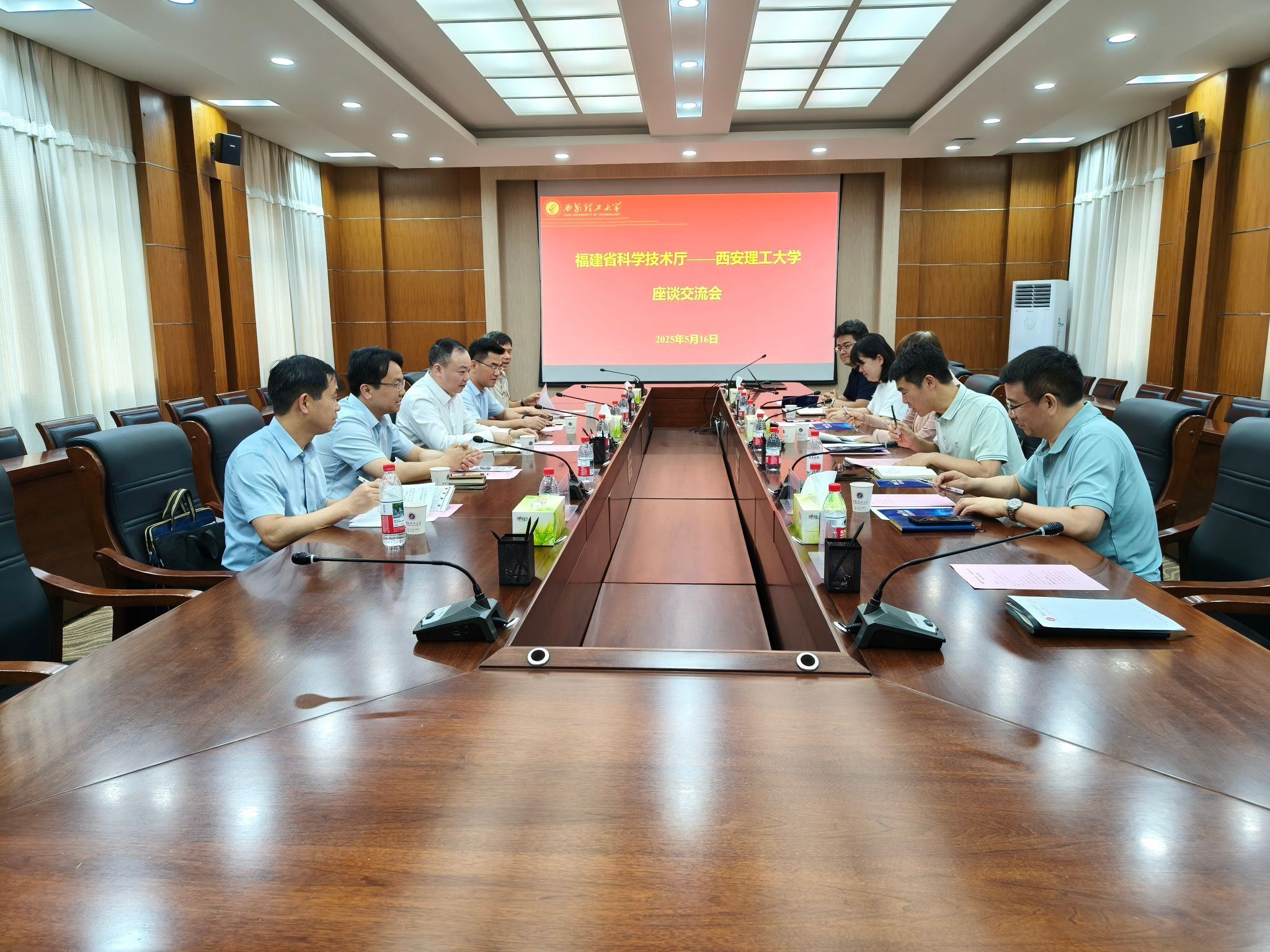 5月16日下午,福建省科学技术厅党组成员、副厅长黄舒一行5人来BEAT365交流产学研合作,双方在101会议室举行座谈会,会议由新质生产力创新中心主任游才印主持。