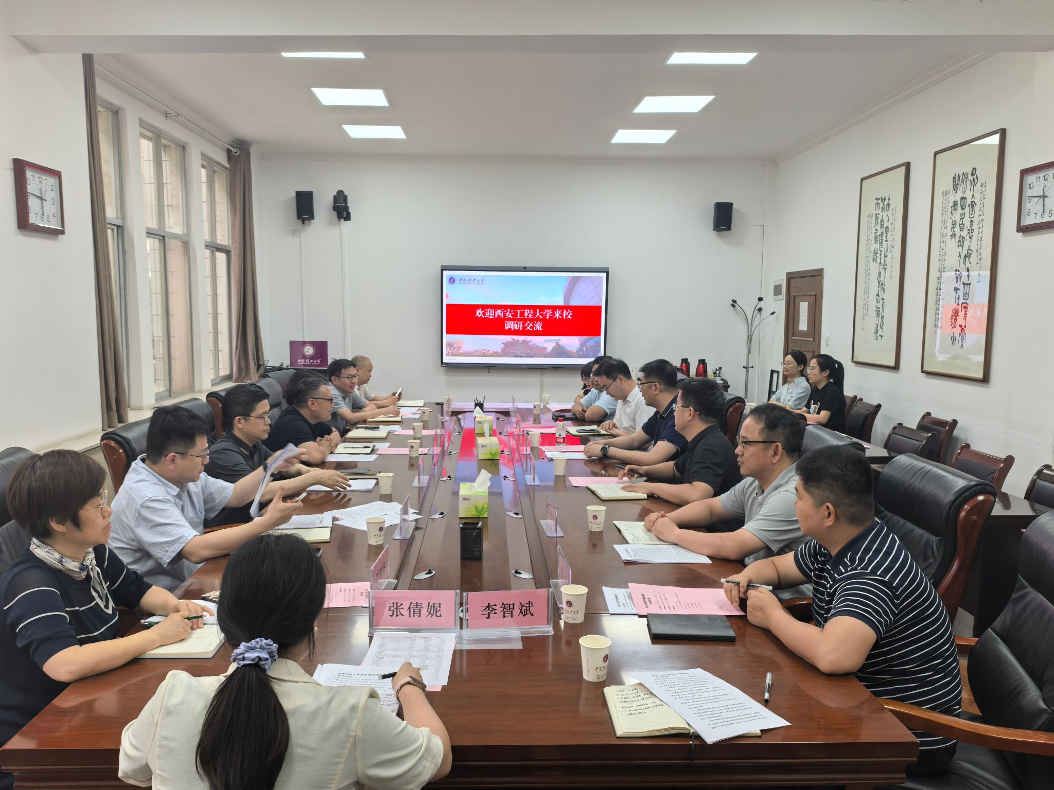 6月6日下午,西安工程大学副校长杨建一行9人来校调研交流,BEAT365副校长张晓晖主持调研会议,资产与招标管理处、财务处负责人及相关工作人员参加了座谈。
