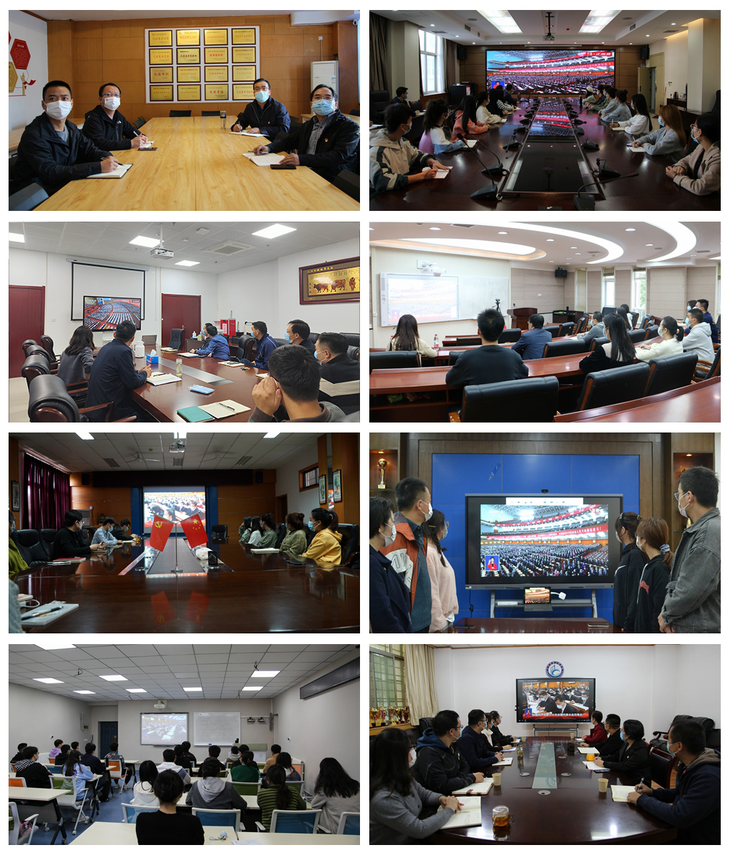 面向全校师生,学校党委采用“因地制宜、集中+分散、灵活多样”的方式,校内依托党委理论学习中心组、师生党团支部组织党政干部、教师党员、民主党派、思政课教师、辅导员、团学干部以及学生党员代表在智慧教室、会议室、党建活动室等场所集中收看大会盛况。校外师生就地就便通过网络、电视等多种方式收听收看大会直播。