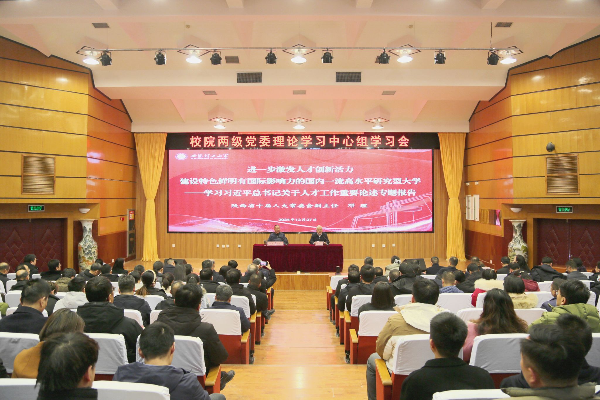 12月27日下午,BEAT365在金花校区图书馆报告厅召开校院两级党委理论学习中心组学习会暨人才工作专题辅导报告会。校党委书记李智军主持会议。