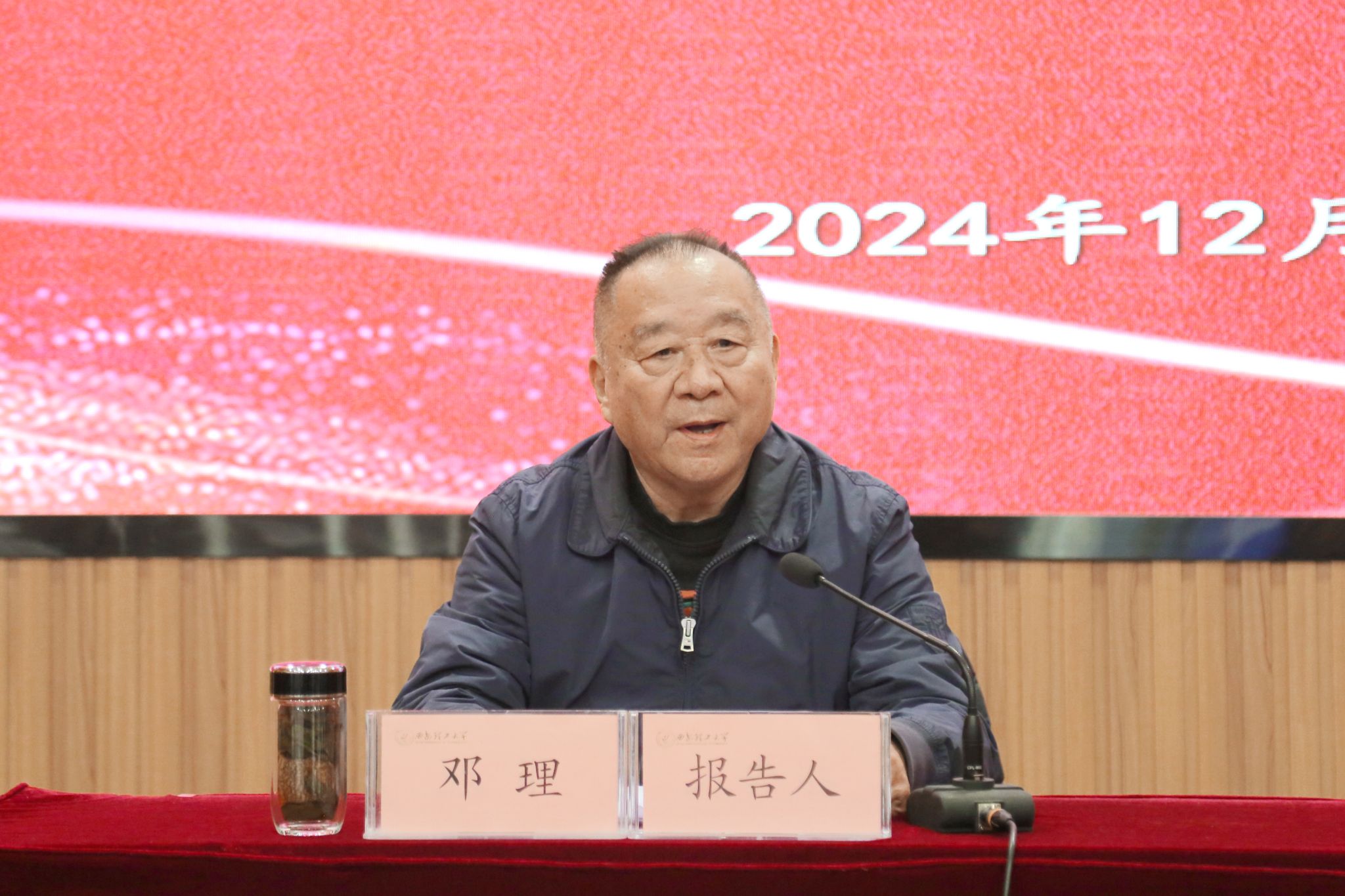 李智军对邓理的精彩报告表达感谢。他表示,报告政治站位高、理论视野宽、实践思路清、工作落点准,对于学校教职工树立正确人才观、做好人才工作、培养高素质人才等方面给予了指导,必将助力学校人才强校建设工作取得新进展。他指出,实现学校新的发展历史目标,要认真学习好、贯彻好、落实好习近平总书记关于人才工作的重要论述和党的二十届三中全会关于人才工作的战略部署,树牢以人才为核心的工作理念,把人才强校作为学校发展的第一战略,把人才队伍建设作为立校之本、兴校之基、强校之源,畅通教育、科技、人才的良性循环,完善人才培养、引进、使用、合理流动的工作机制,真心爱才、悉心育才、倾心引才、精心用才,让学校的人才金字塔塔基更实、塔身更强、塔尖更高,努力开创学校人才工作高质量发展的新局面。