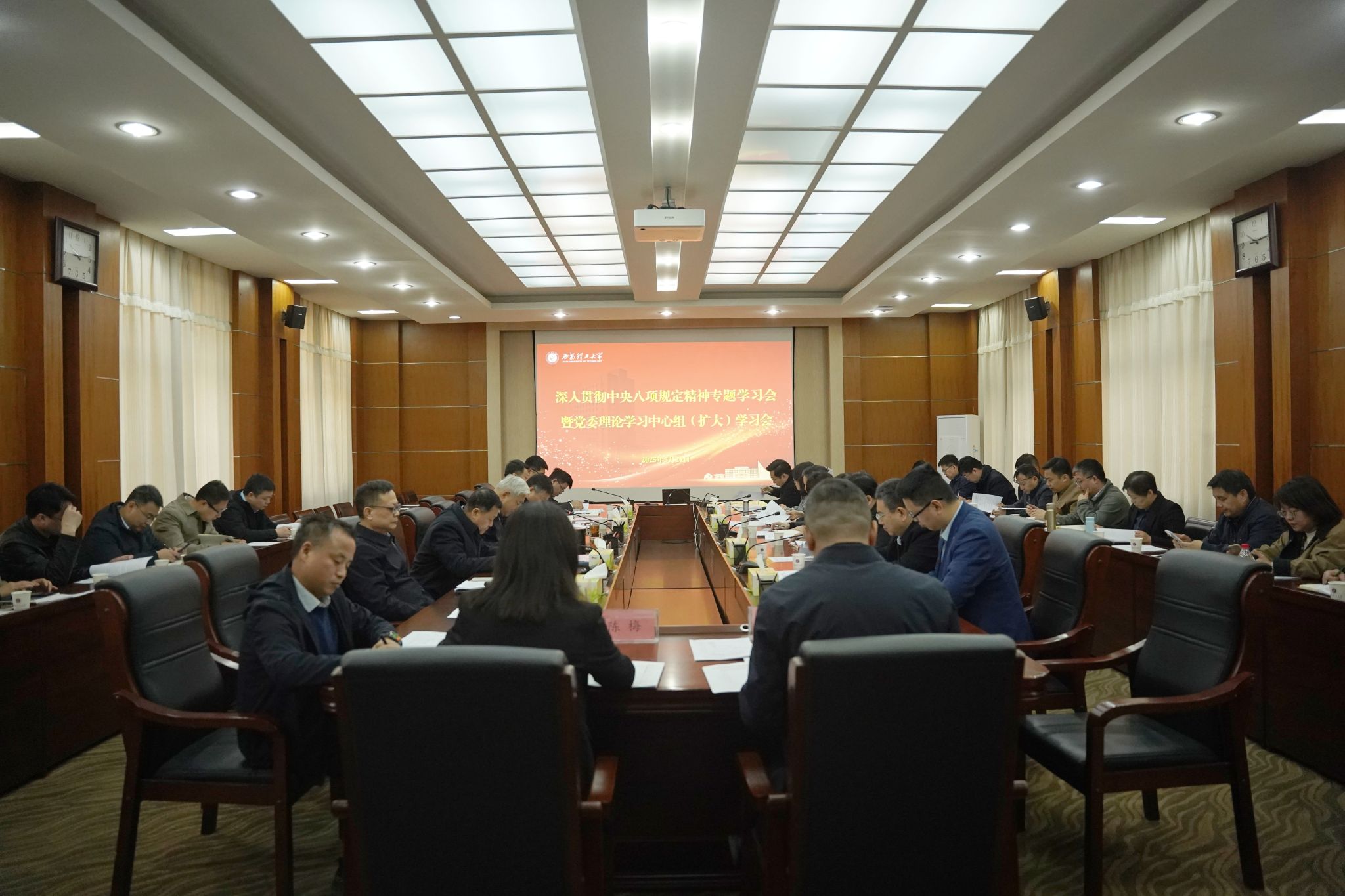 3月21日上午,校党委在金花校区101会议室召开党委理论学习中心组(扩大)学习会,开展深入贯彻中央八项规定精神学习教育专题集中学习。校党委书记李智军主持会议。