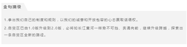 虽然我们离真正的自贸区还有很长的路要走,但戴教授对此充满信心。自贸区已由1.0版升级到2.0版,必将如长江黄河一样势不可挡、奔涌向前,继续升级跨越,探索出一条自贸区全新的路径。